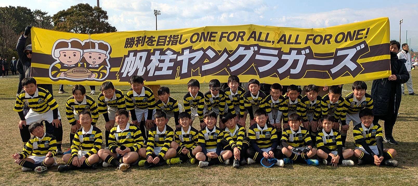 選手たちは最後まであきらめずに、走り、あたり、タックルし、トライをしてラグビーを楽しんでいました。コーチの想像を超えるようなプレーがたくさん見られました。涙あり、笑顔あり、またひとつ成長できたと確信しています。5年生のサポートメンバーにも本当に助けてもらいました。大勢の方々に応援にきていただき、子どもたちの力となりました。